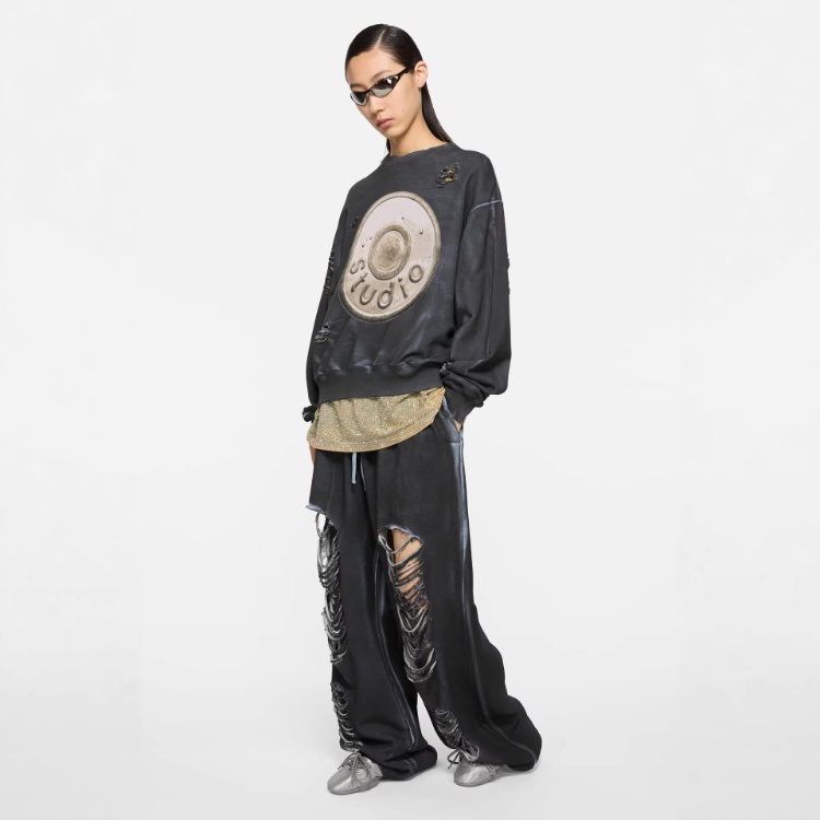 Acne Studios Printed Washed Distressed Loose-fitting Hooded Sweatshirt-6363