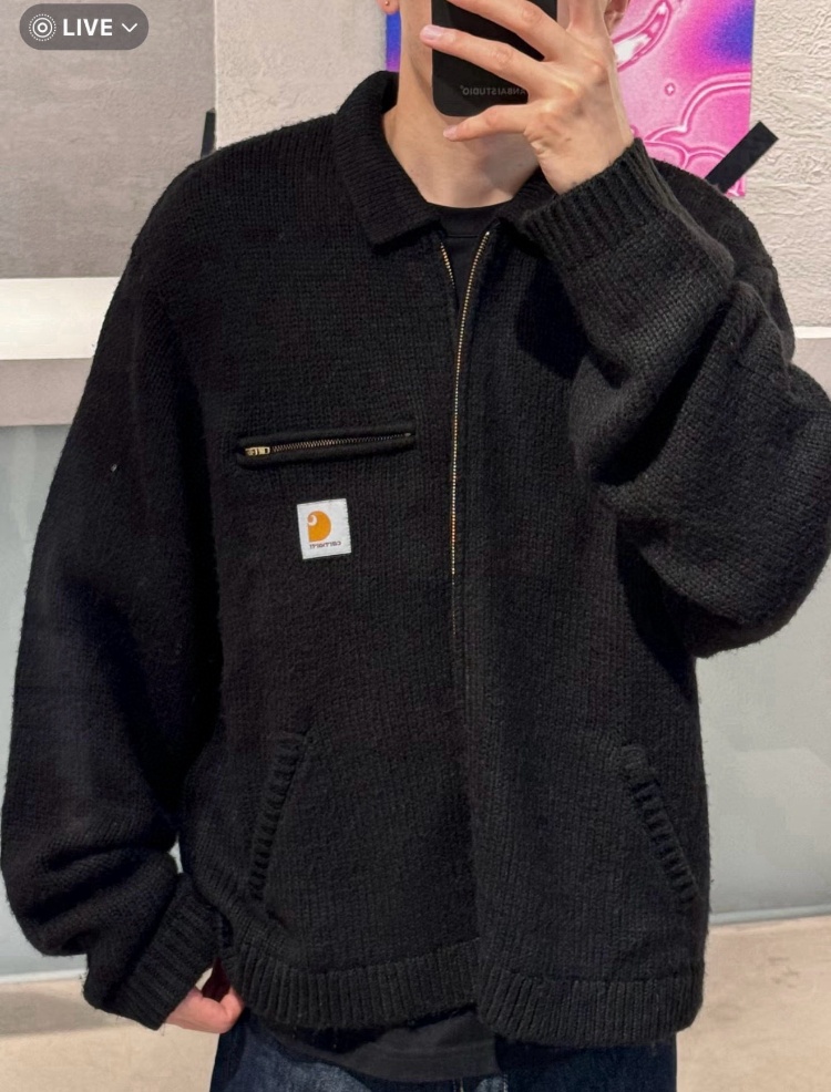 Home > Carhartt WIP polo shirt collar zip-up cardigan sweater jacket-6428