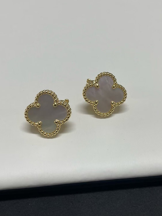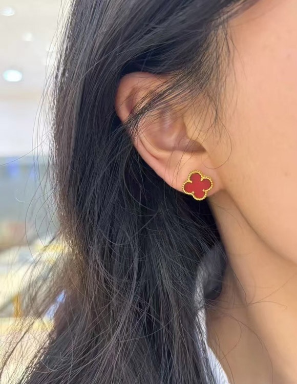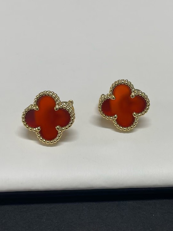 Van Cleef & Arpels Red and White Four-Leaf Clover Earrings-3700