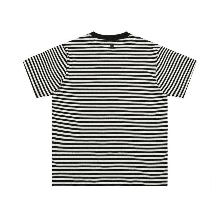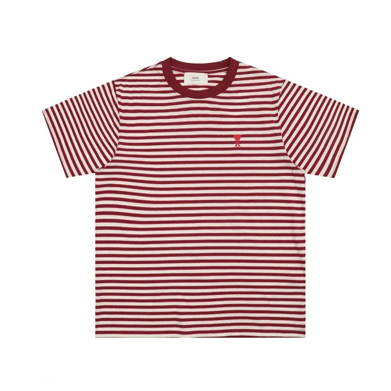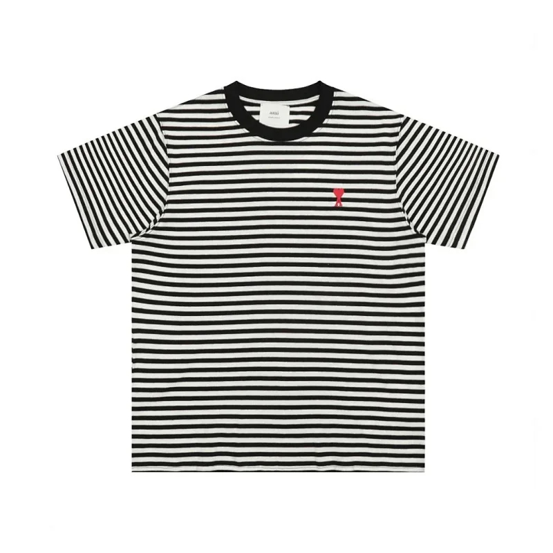 AMIPARIS Classic Striped Short-Sleeved T-shirt with Embroidered Heart Design-5197