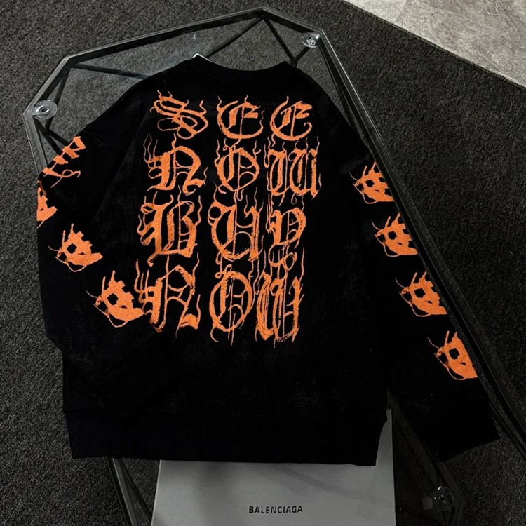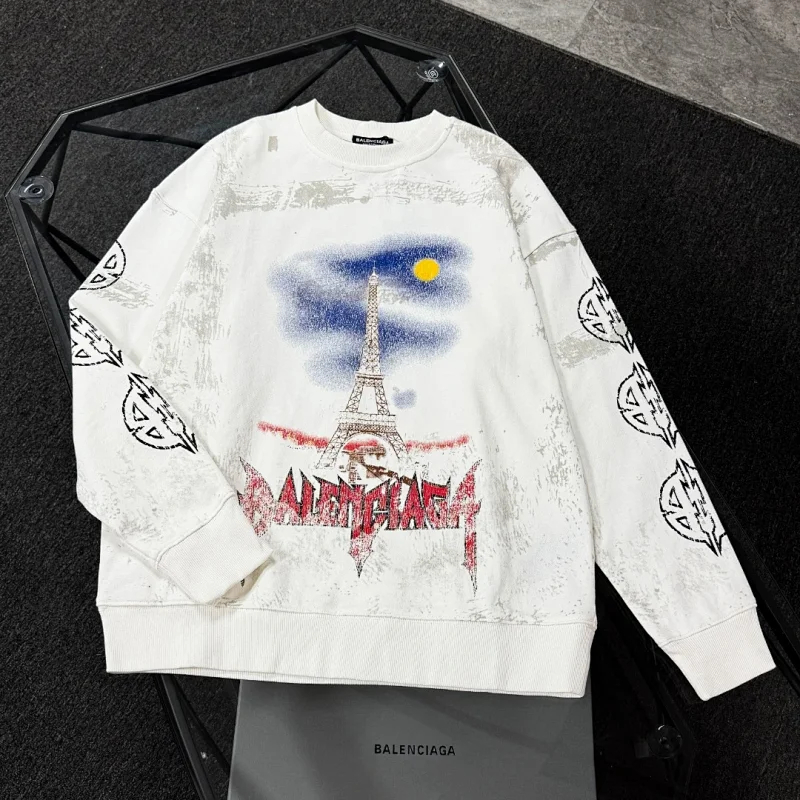 Balenciaga 100% Cotton Printed Crew Neck Sweatshirt-5529