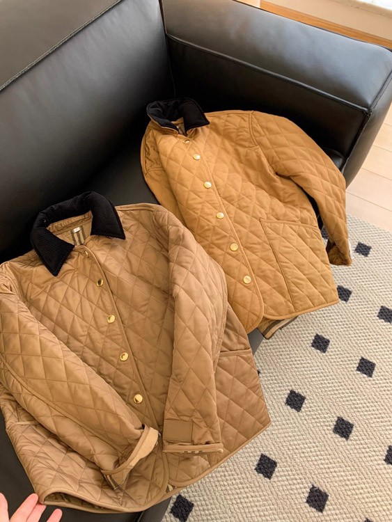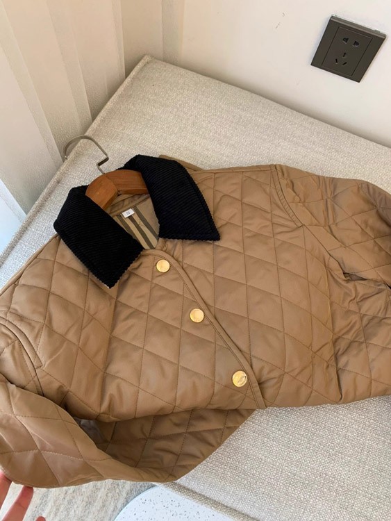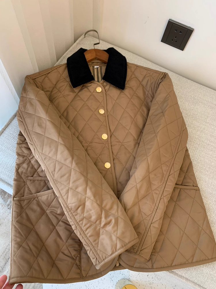 Burberry classic corduroy collar diamond quilted down jacket in golden cotton-5300