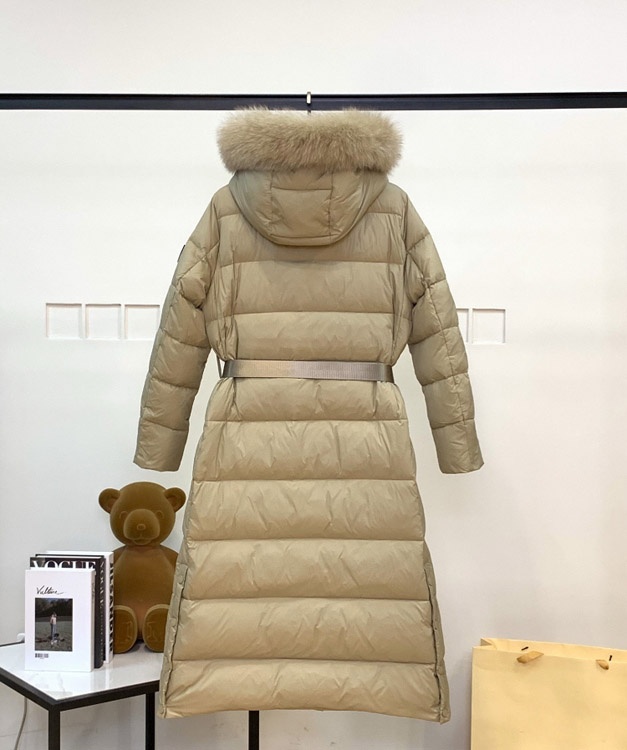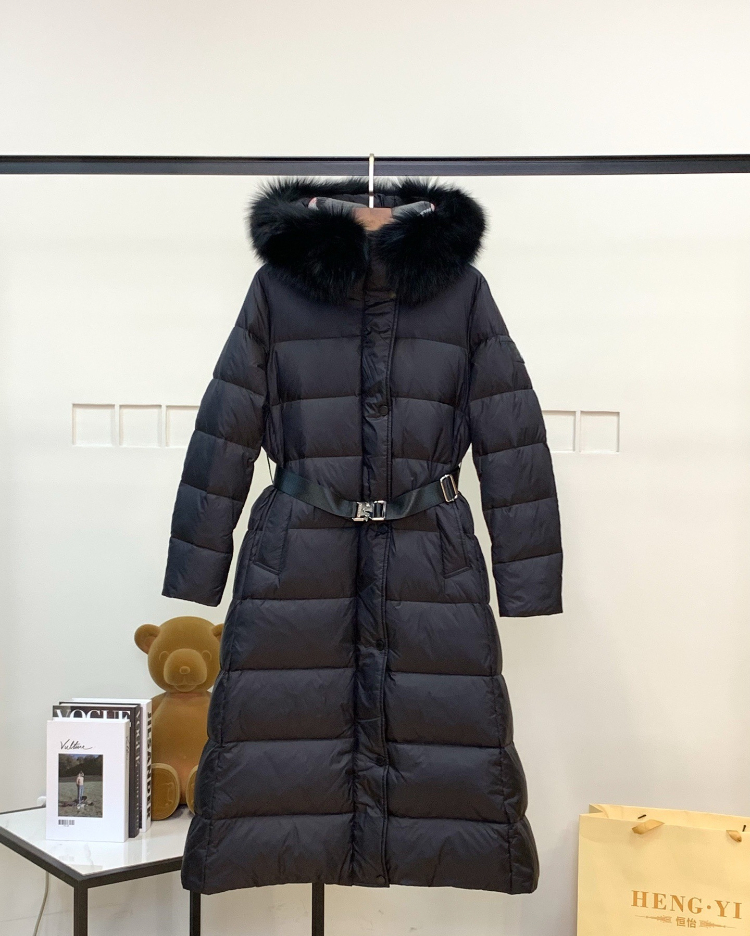 Burberry new long-length, fitted down jacket with fur-trimmed hood-5345