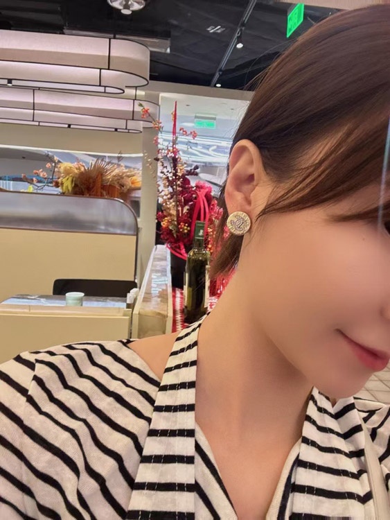 Chanel gold round double c rhinestone letter gold coin earrings-3741