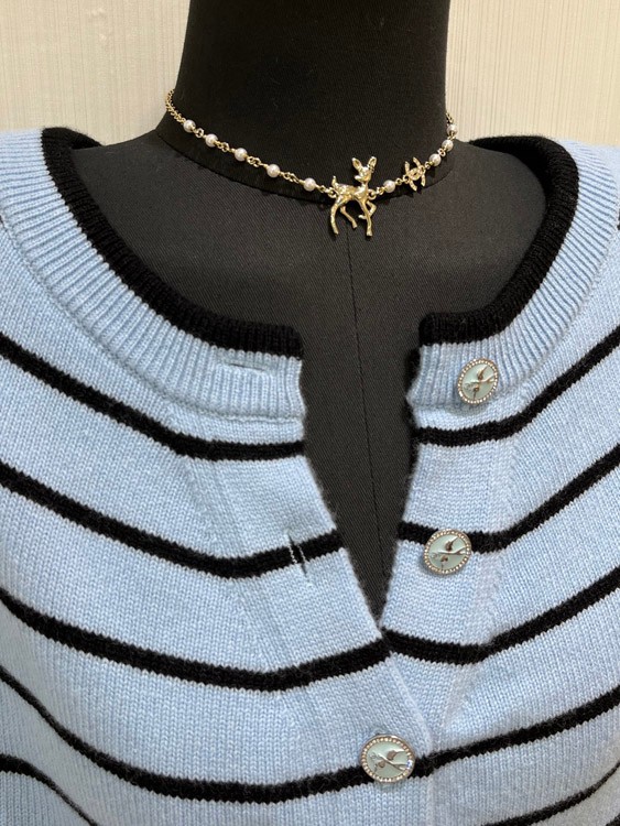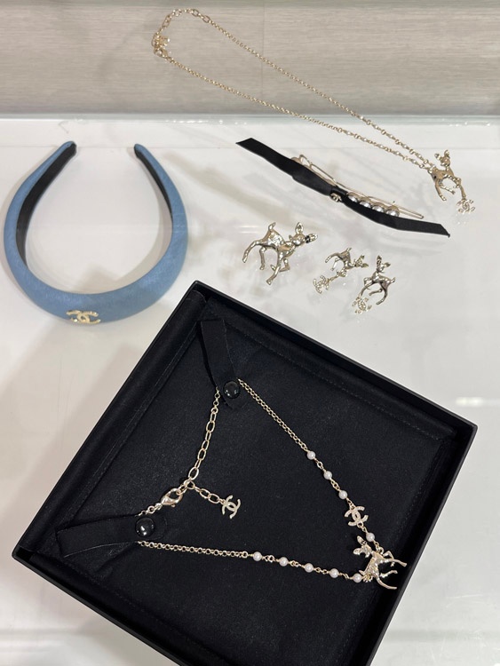 Chanel Golden Deer Full Diamond Double C Pearl Necklace-3749
