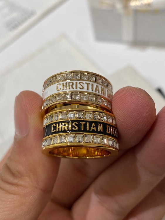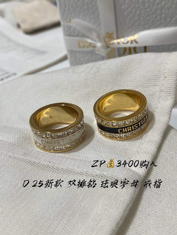 Home > Dior double row diamond enamel letter ring-3953