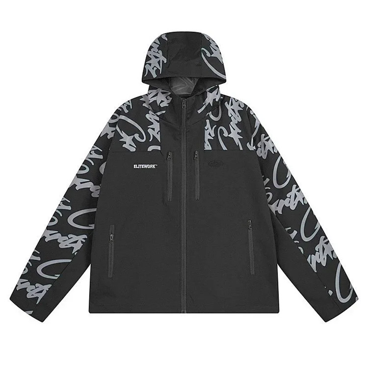 Home > Elitework graffiti zip-up multi-pocket hooded jacket-4385