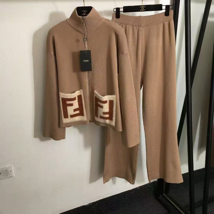 Fendi new knitted set with zipper and F-logo pockets-5376