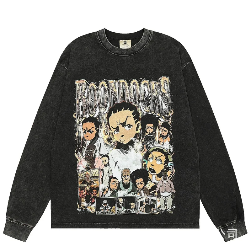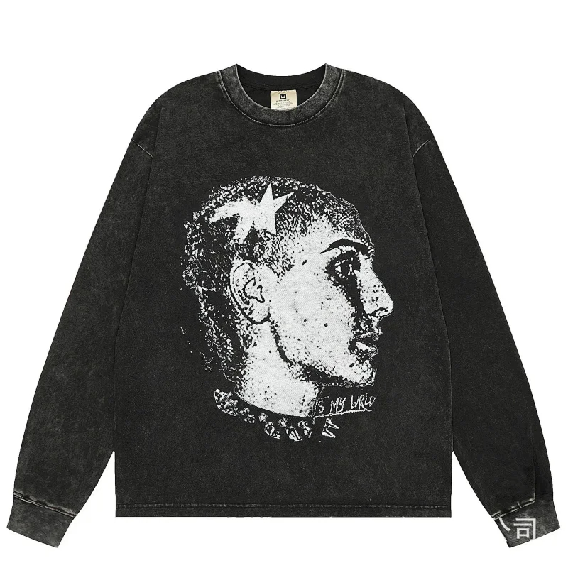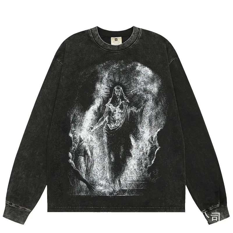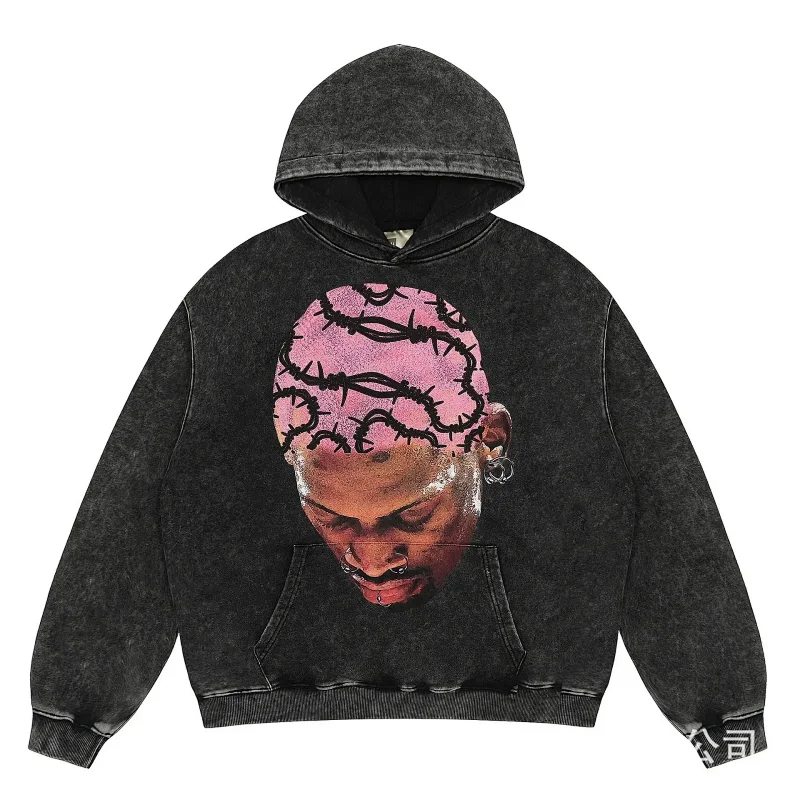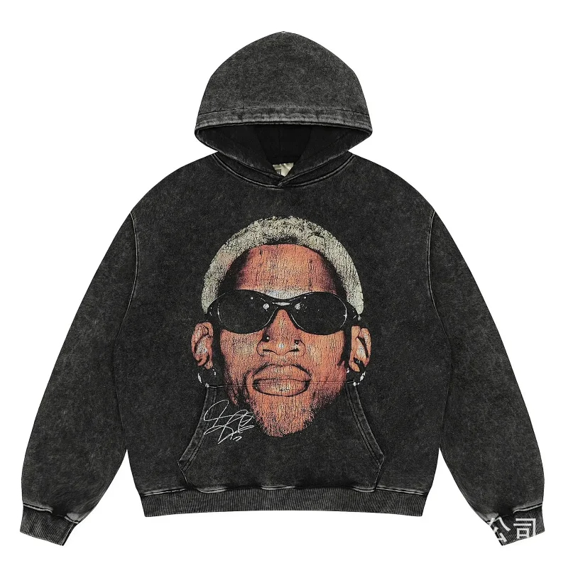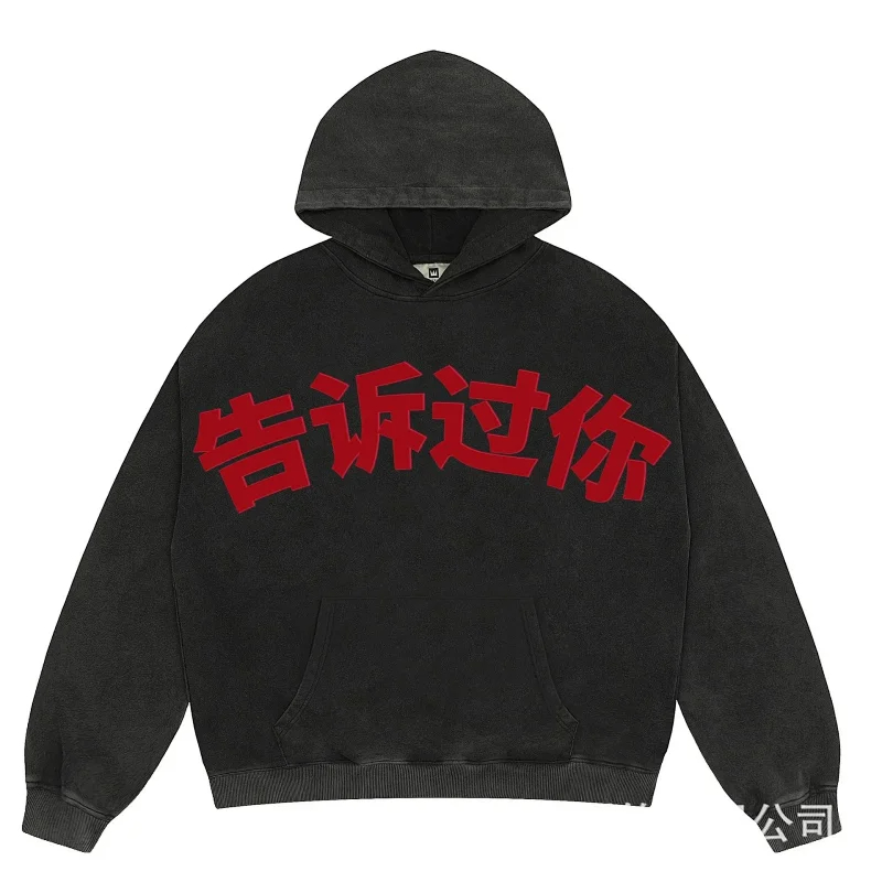 KANYE I told you the same retro washed and distressed hooded sweatshirt with prints Kanye West(39 styles)-2142