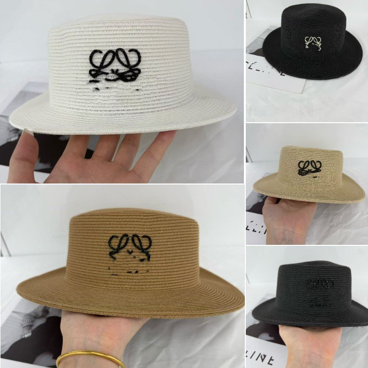 Loewe flat-top straw fisherman hat with sun protection-5980