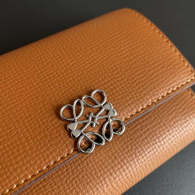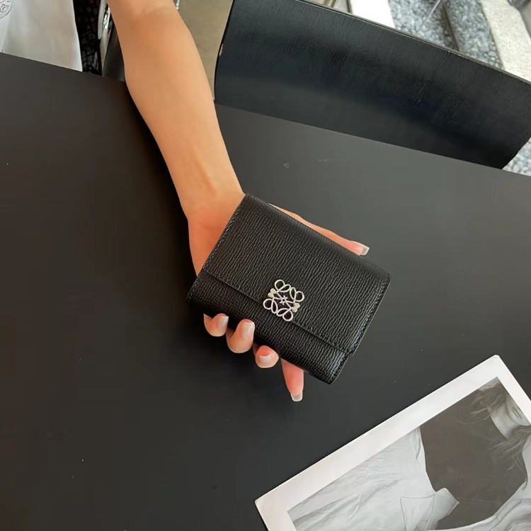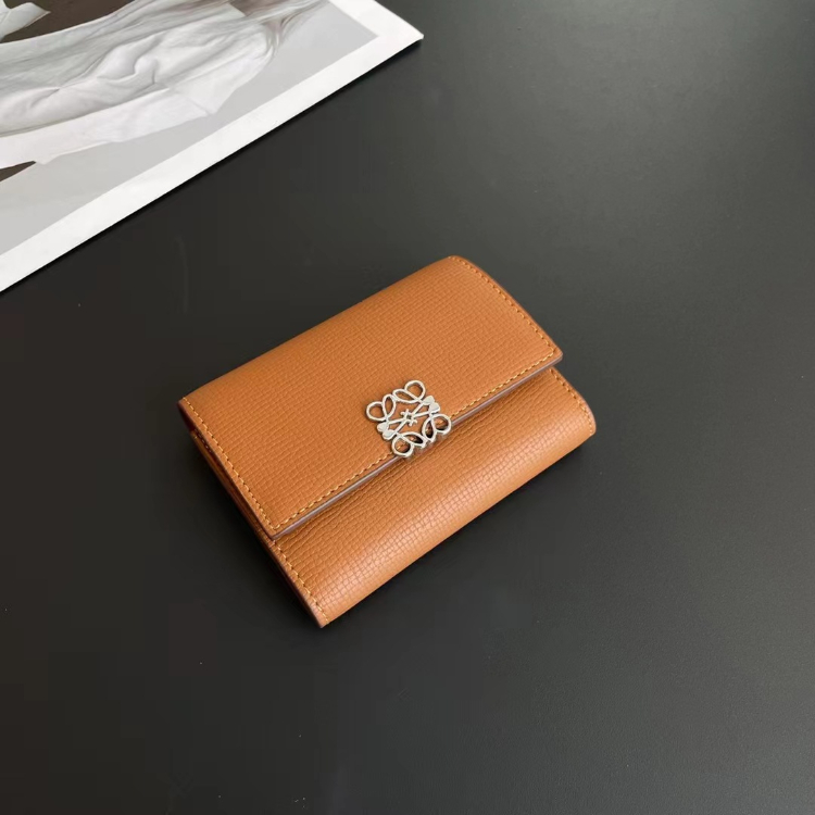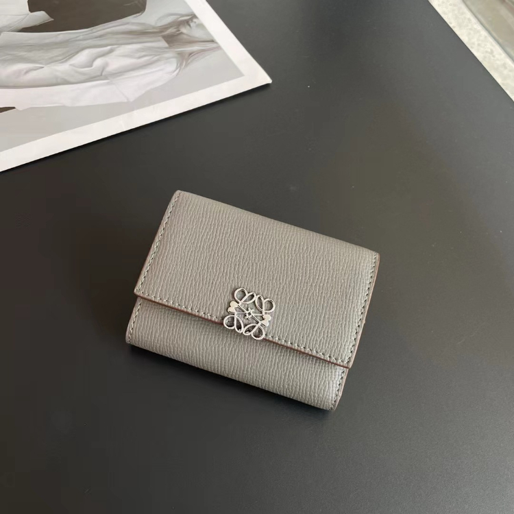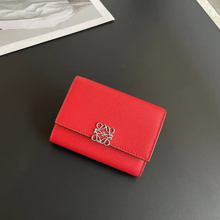 Loewe new tri-fold perforated floral pattern color-block wallet-5778