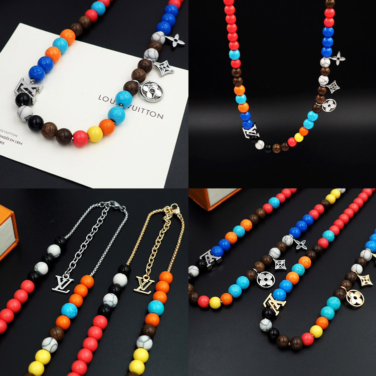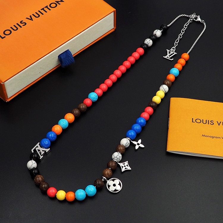 Louis Vuitton LV adjustable cord embellished wooden inscription metal beaded necklace-3950
