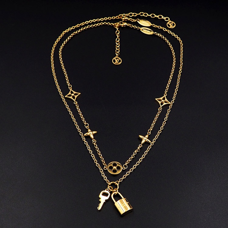 Home > Louis Vuitton LV detachable double chain floral and letter pattern padlock necklace-3808
