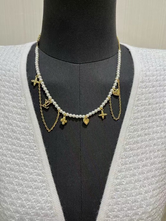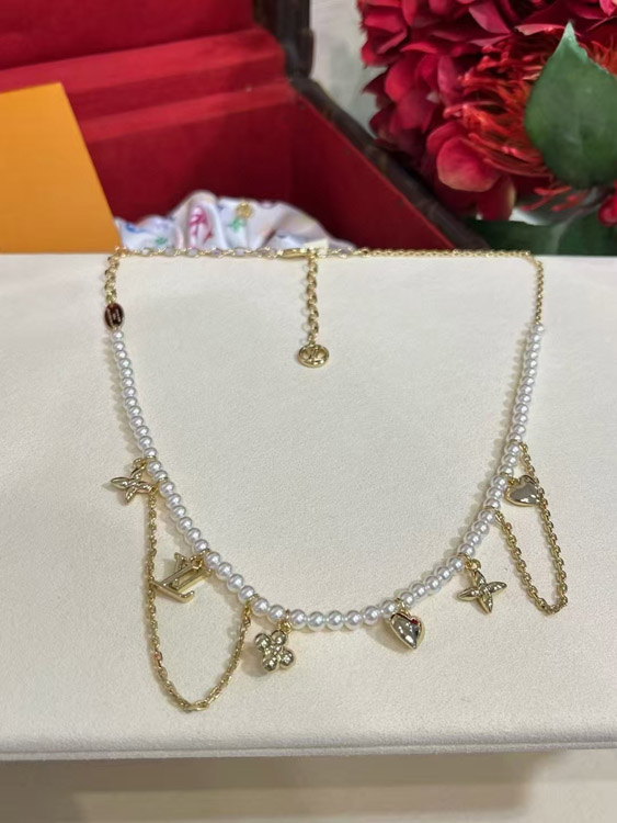 Home > Louis Vuitton LV Gold Letters Old Flower Pearl Necklace-3721
