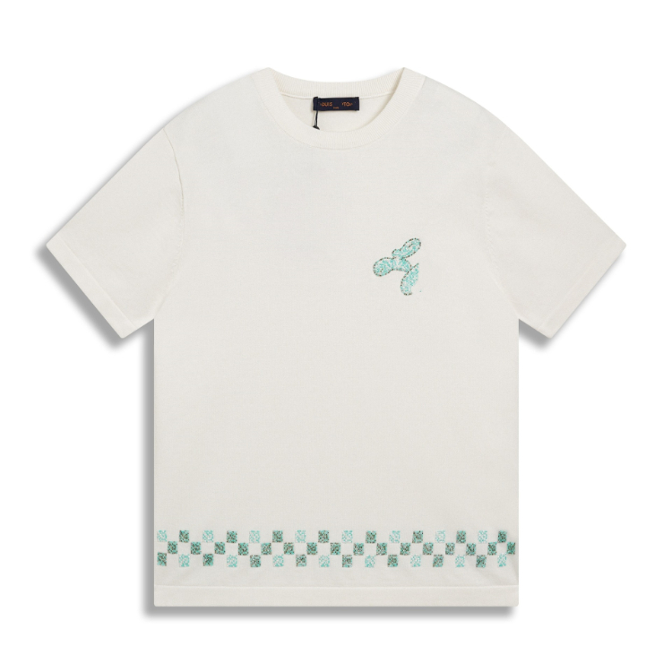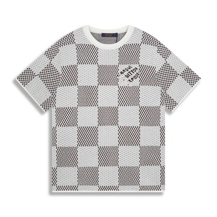 Louis Vuitton LV knitted checkerboard pattern letter jacquard casual loose short-sleeved T-shirt-5308