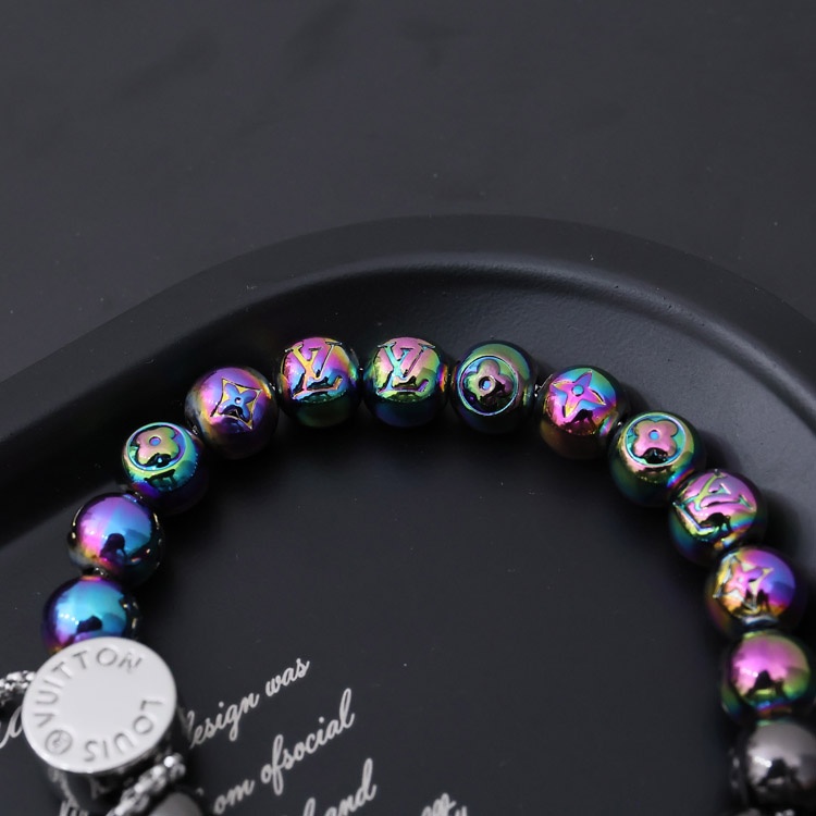 Louis Vuitton LV metal beaded engraved letters and flowers colorful beads bracelet-4047