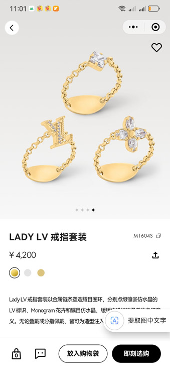 Louis Vuitton LV metal chain diamond ring-3800