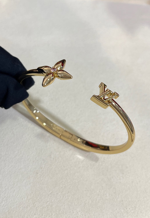 Louis Vuitton LV Rose Quartz Floral Letter Gold Open Bracelet-3720
