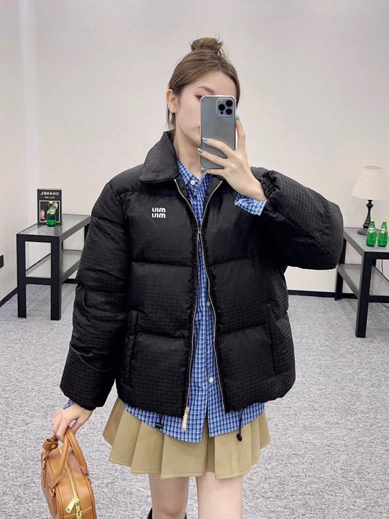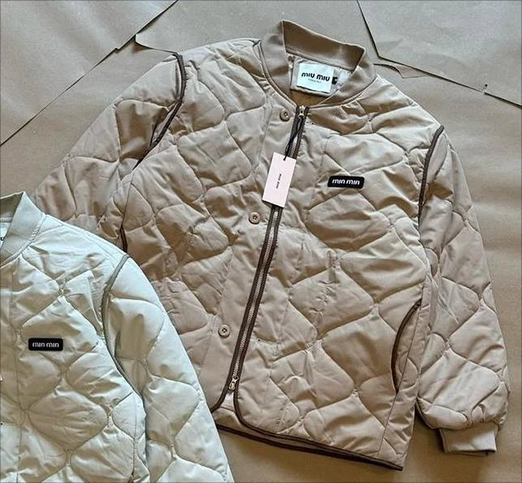 Miu Miu new diamond-patterned logo patch embroidered collar jacket-4872