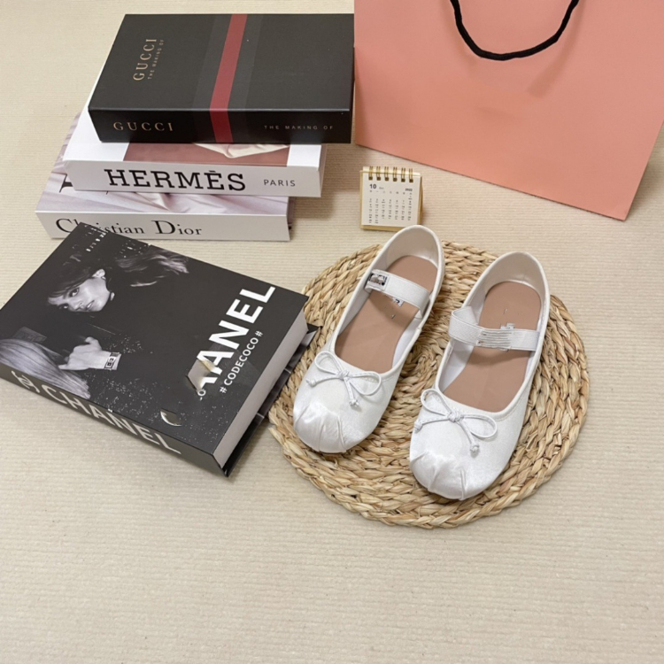 Miu Miu new silk flat ballet shoes with bow detail-5717