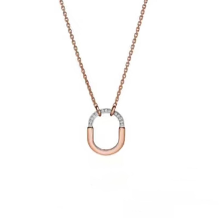 Tiffany mini U-shaped lock half diamond two-tone necklace-3962