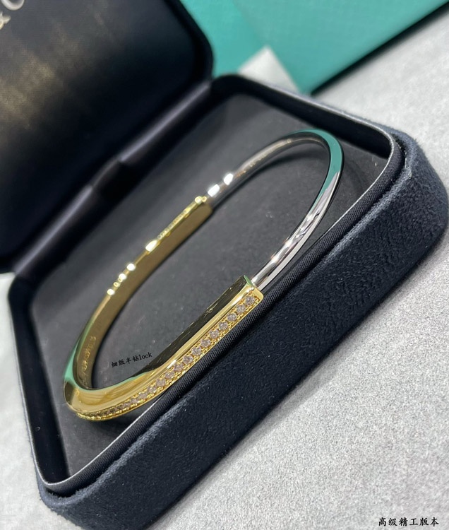 Tiffany thin half diamond lock bracelet-3968