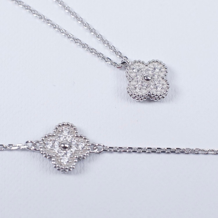 Van Cleef & Arpels full diamond four-leaf clover necklace bracelet-3696