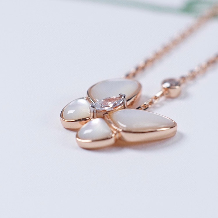 Van Cleef & Arpels Gold and White Mother-of-Pearl Butterfly Necklace-3694