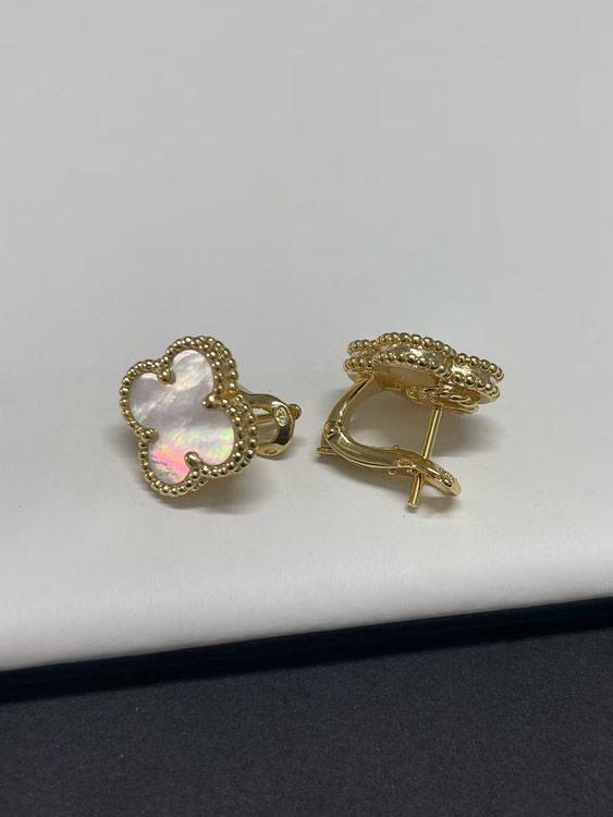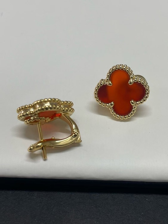 Van Cleef & Arpels Red and White Four-Leaf Clover Earrings-3700