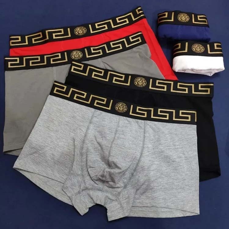 Versace Men's solid color fashionable underwear Stretch waistband embroidery boxer 3pcs(5 styles)-2363