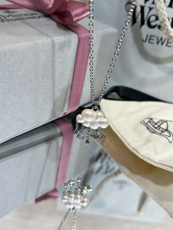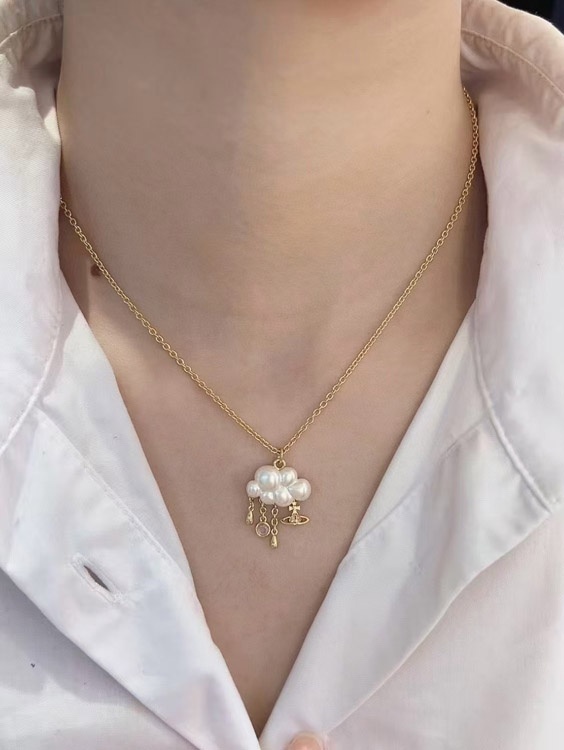 Vivienne Westwood Pearl Cloud Small Saturn Pendant Necklace-3829